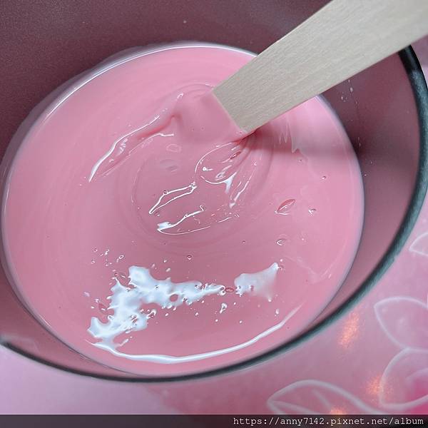 STEP3→熱蠟像這樣↓的完全融化,有點微微濃稠又有點流動的狀態,