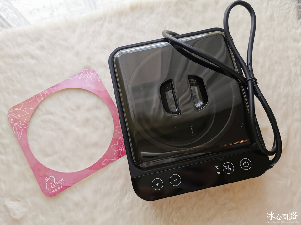 特色是用指腹輕觸面板就可以操作各式功能,輕鬆簡易!一旁粉紅色的圈圈就是"防汙墊圈",使用時務必將防汙墊圈放置於機器上,防止熱蠟滴落機身,保持熱蠟機的整潔。