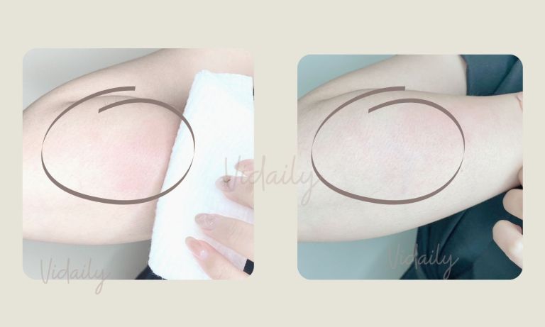 左:除毛後保養中 右:使用完凝膠後,皮膚的泛紅感減少許多