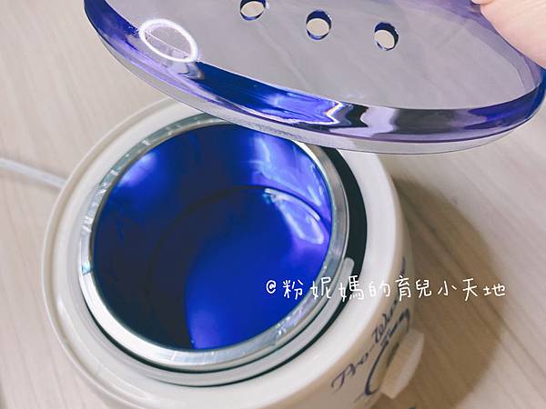 顏色當然不會只有單一,有亮黑色、白色、粉色、綠色,還有新上市的霧黑色,顏色多樣,粉妮媽是選清新舒爽的白色,機子本身有份內外鍋,外鍋是鋁合金材質也有防燙手把,很貼心的設計呢~還有透明的上蓋,讓你蓋著也可以看見臘豆融化的情形,跟鍋子好像,不知道能不能拿來蒸蝦(喂!麥亂啊~)