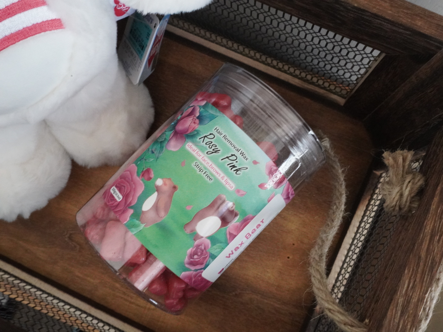 超可愛的小熊造型!我搭配的是限量款的紅粉薔薇小熊,全新升級的配方與成分,融點低,延展性跟除毛力大幅提升,除毛有效率而且一大盒可以用很久!