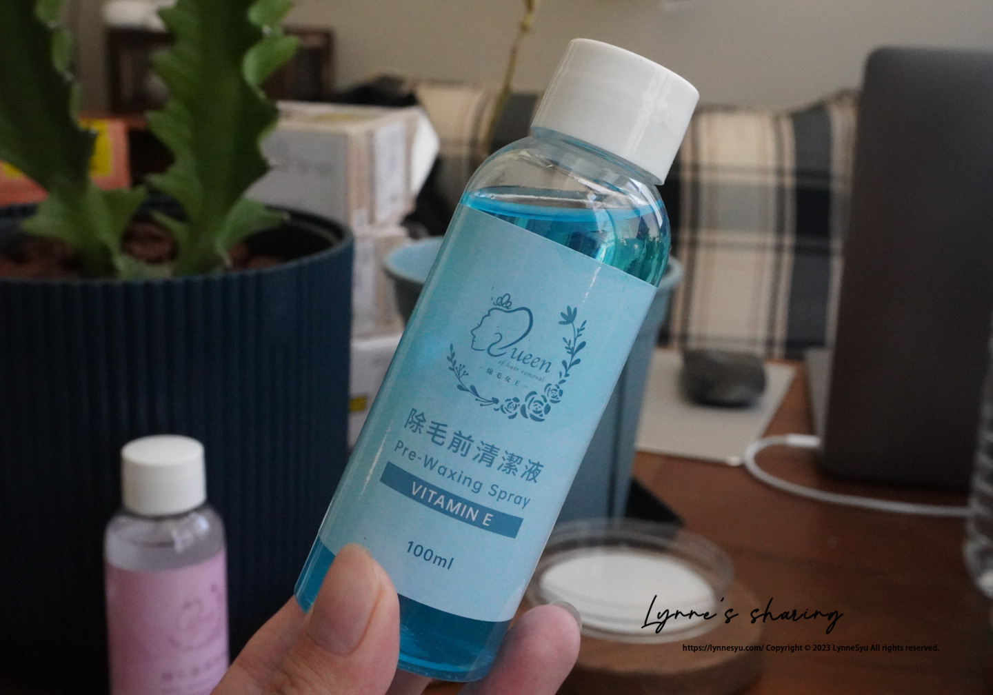 ➁ 等待的過程中,拿出組合中的「除毛前清潔液」擦拭欲除毛之部位,清潔肌膚上的汗漬、油脂及髒污,提升除毛效果。(多做這一步,可以大大避免灰塵、油脂影響除毛效果)