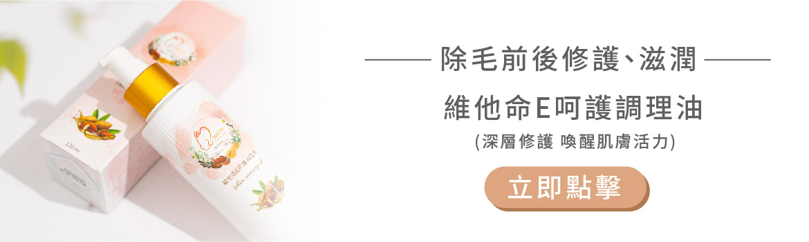 熱蠟除毛後,肌膚經歷了毛髮拔除的過程,毛孔會暫時張開,皮膚也可能因拉扯出現短暫的敏感或泛紅。此時使用維他命E呵護調理油,能夠幫助修護、滋潤,讓肌膚更快恢復健康狀態。