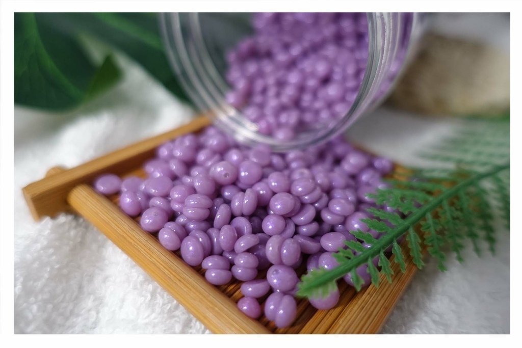 低痛感保濕型蠟款系列,有4款蠟豆,紫/葡萄、粉/棉花糖、藍/洋甘菊、橘/桂花,可供挑選。