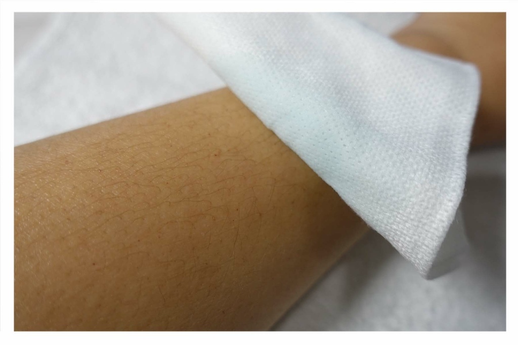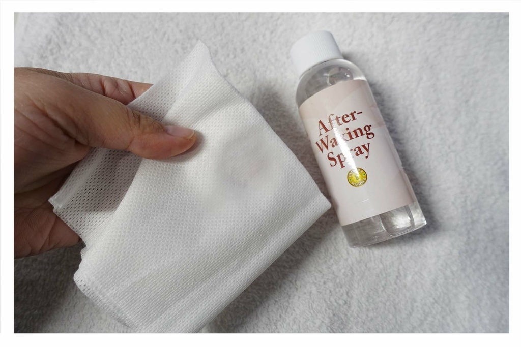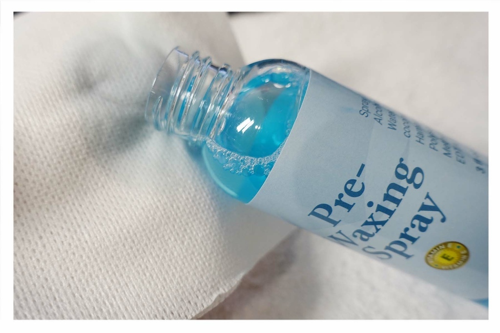 除毛前的清潔可不要略過,務必要先清潔肌膚油漬、汗漬、污漬等,如果沒有先清潔乾淨可是會影響除毛的效果喔!這款清潔液擦拭後會有微涼感,蠻舒服的,我都等待幾秒後在上熱蠟。