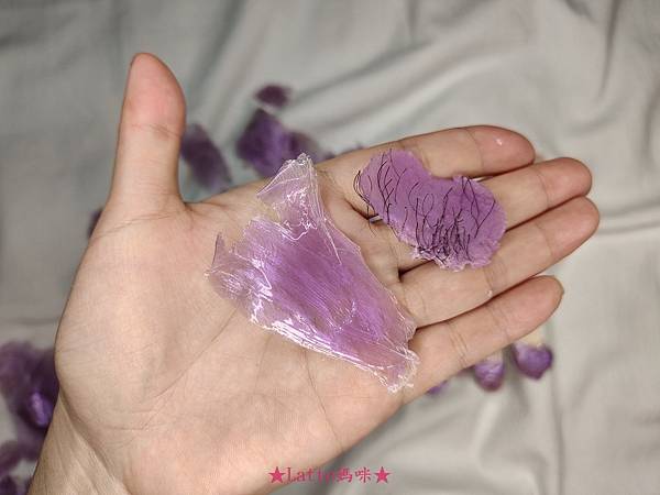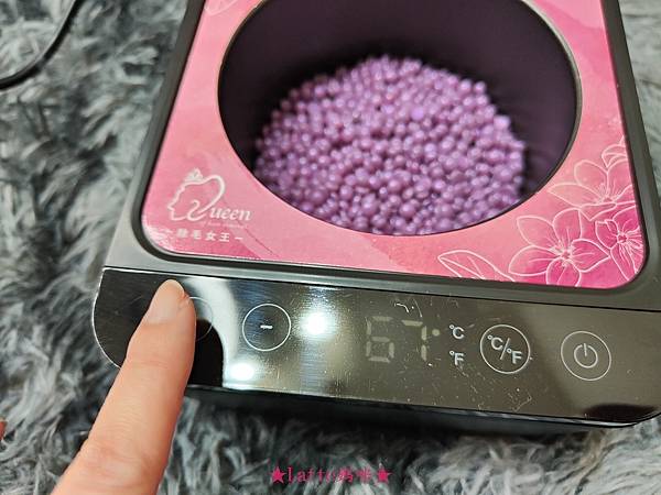順毛塗抹熱蠟,寶石星空蠟豆乾的速度非常快,約3-5秒即乾。紫色的蠟豆,有著淡淡的葡萄香氣。