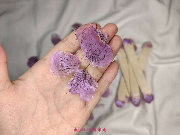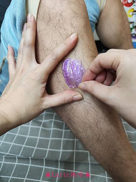 順毛塗抹、逆毛撕!!寶石星空蠟豆抓毛力強,輕鬆即可撕下!!在撕下的瞬間,記住!!「快、狠、準」就對了!如果真的從來沒除過毛,建議先觀看影片+找朋友試手感(唉呀,Latte好壞!!因為,從來沒撕過,會有點擔心手的姿勢不順或無一氣呵成!!)Latte是覺得不必太擔心,其實在手上試溫時,就可稍加練習了!!