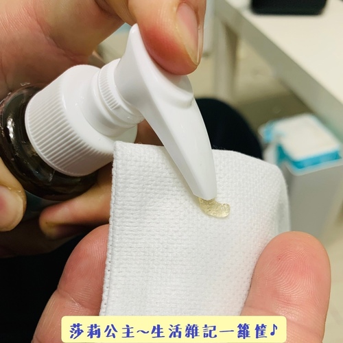 倒一些在擦拭巾上~