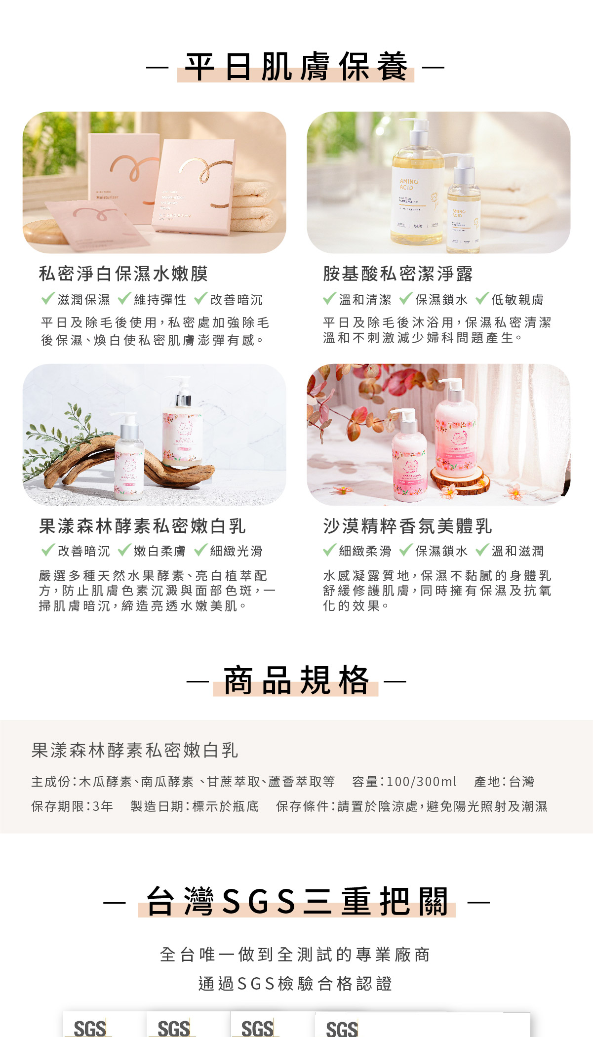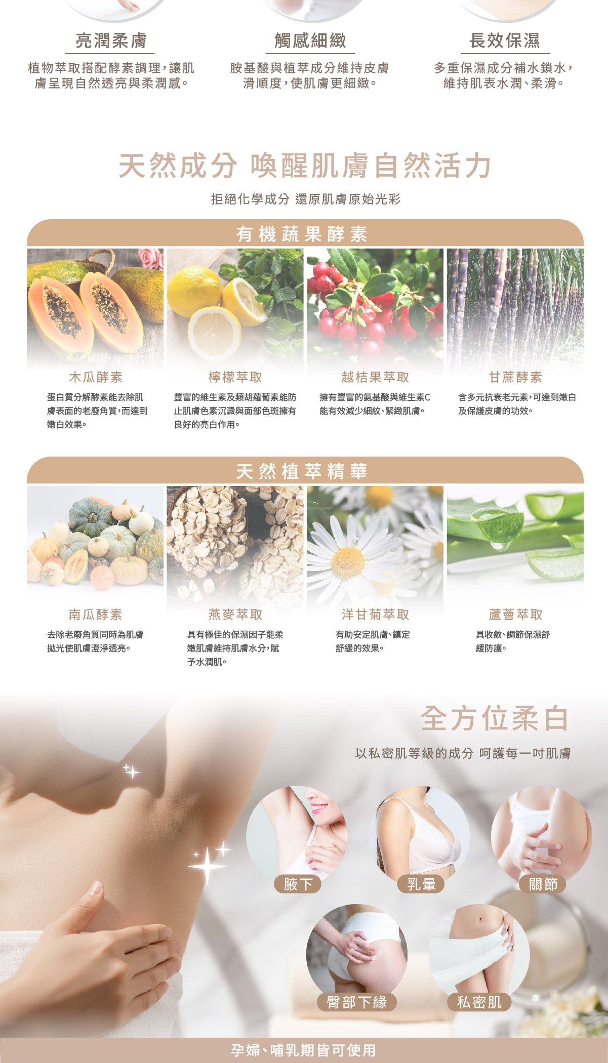 私密處肌膚保濕、嫩白、撫平細紋及角質柔嫩(全身亦適用)