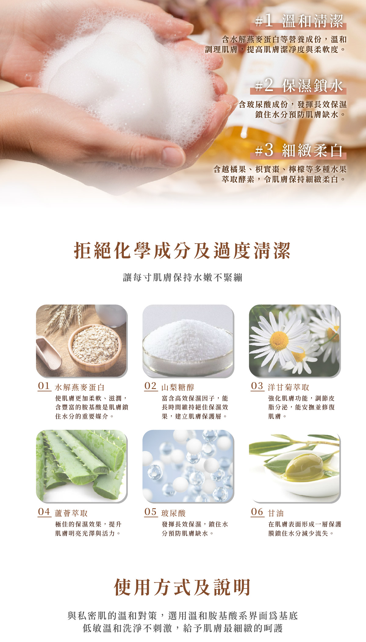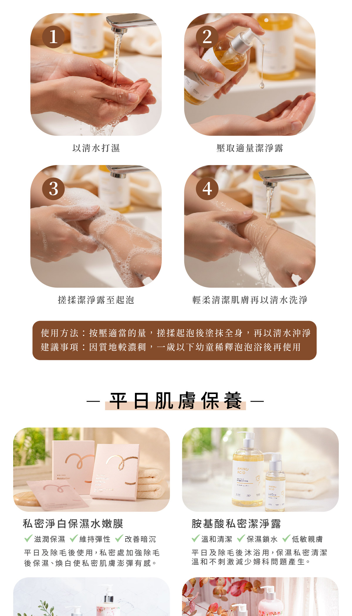 每日私密肌清潔、保養、一般清潔沐浴使用