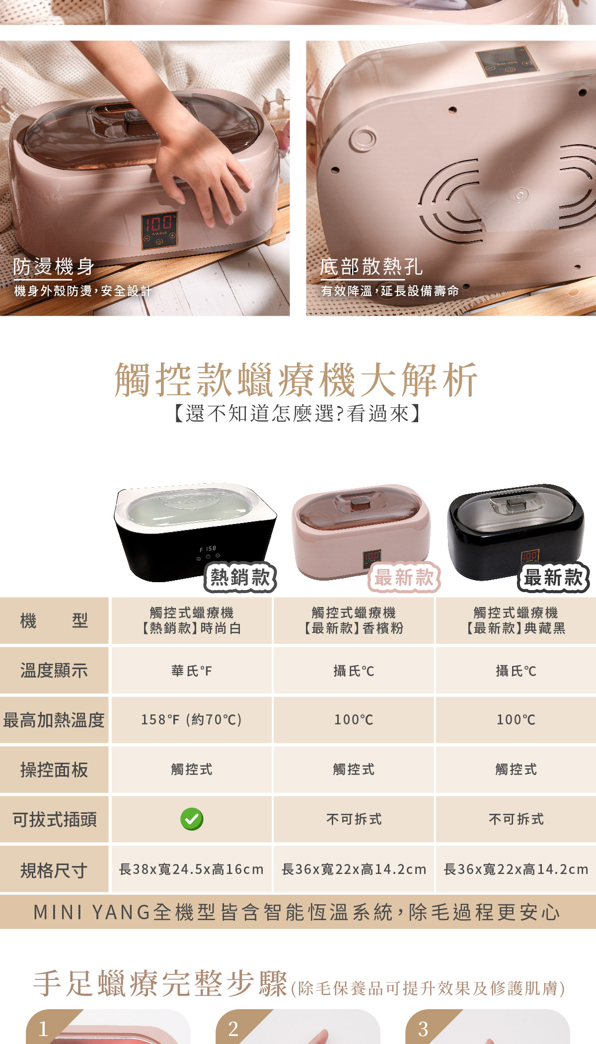 1、新款觸碰式蠟療機(內鍋不可拆)